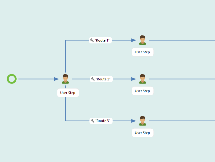 A user step can feature multiple exits, which appear as buttons in the client interface. There's no limit on the number of exits possible, but having too many buttons (especially in mobile clients) can clutter the interface. In such cases, using a sub-workflow instead of a exit button may be preferable.