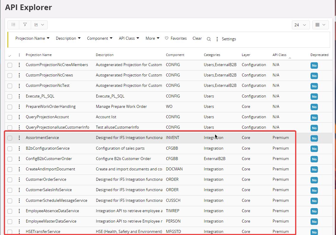 Premium projections is offered by IFS as a complement to standard projections. Standard projections are primarily designed to support Aurena pages. Premium projections on the other hand is designed for integrations. Premium Projections replaces the old BizAPIs.