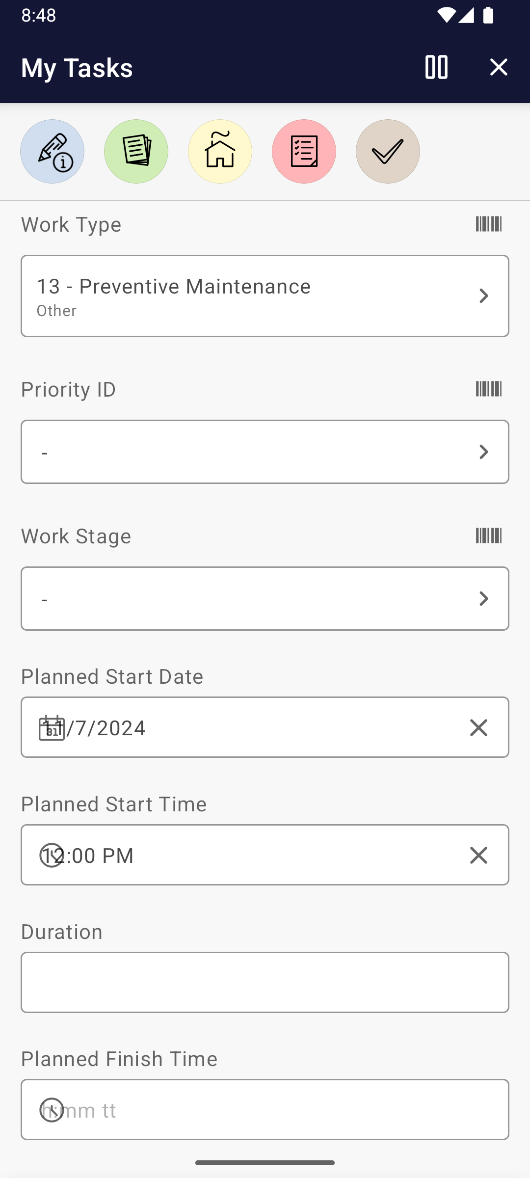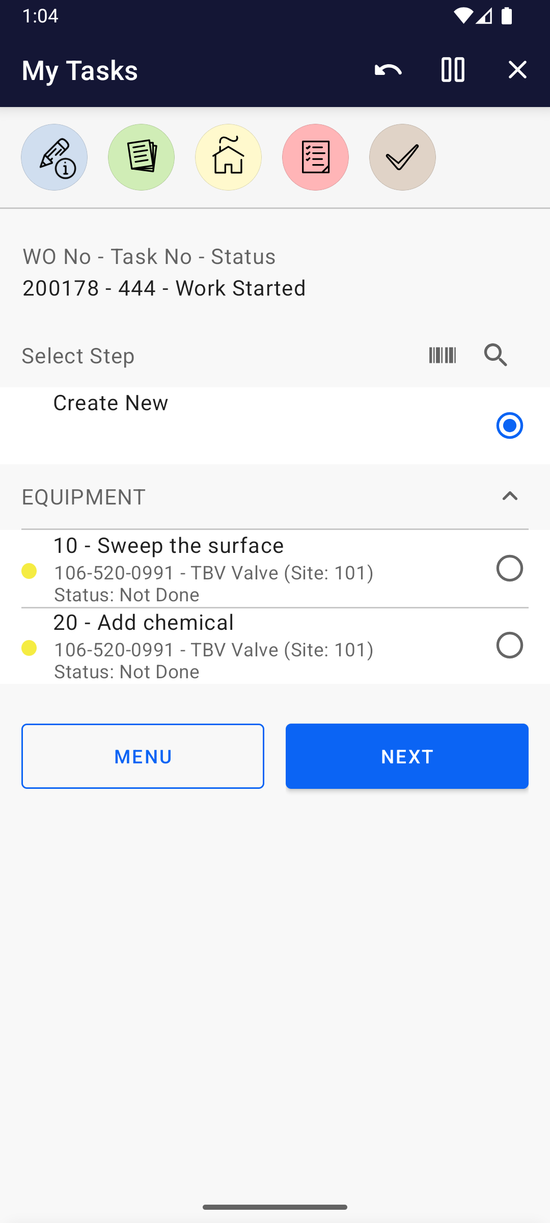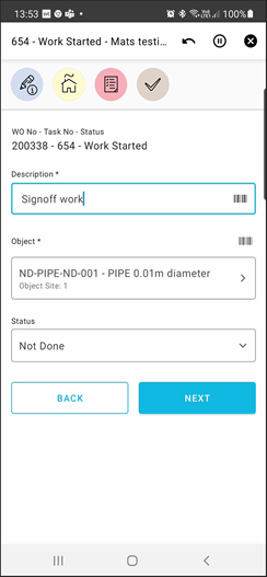 As a Field Technician I can perform the following on the selected Work Task: