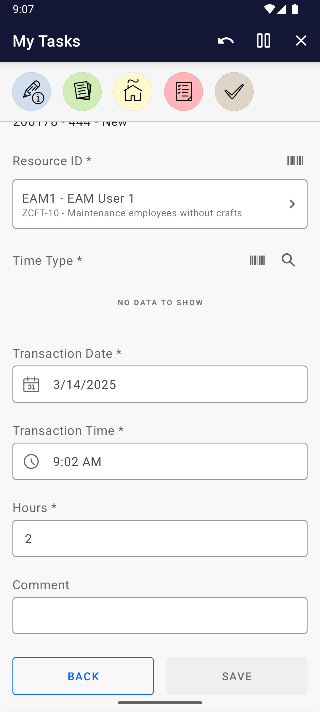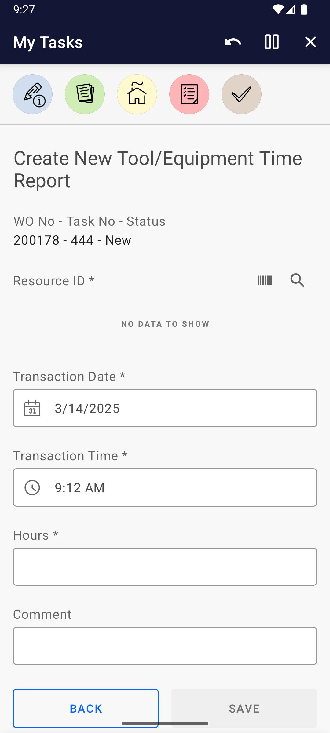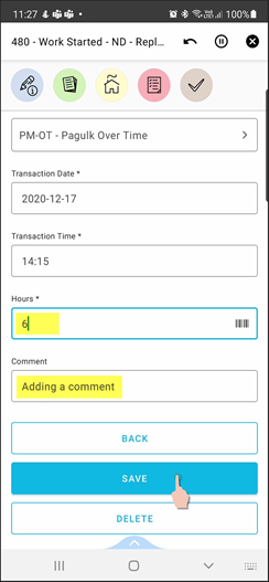 * *Add transaction* to Work Task