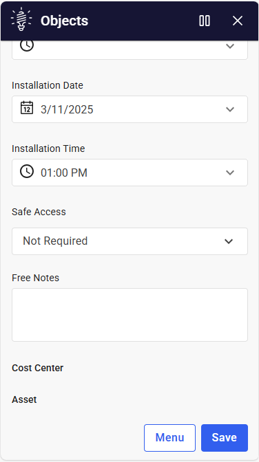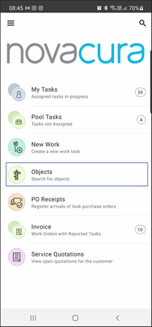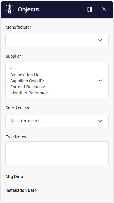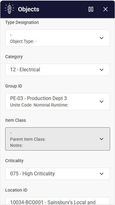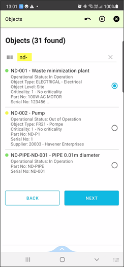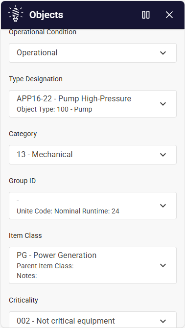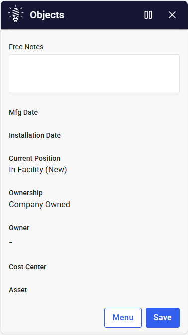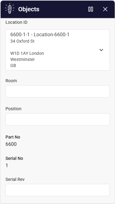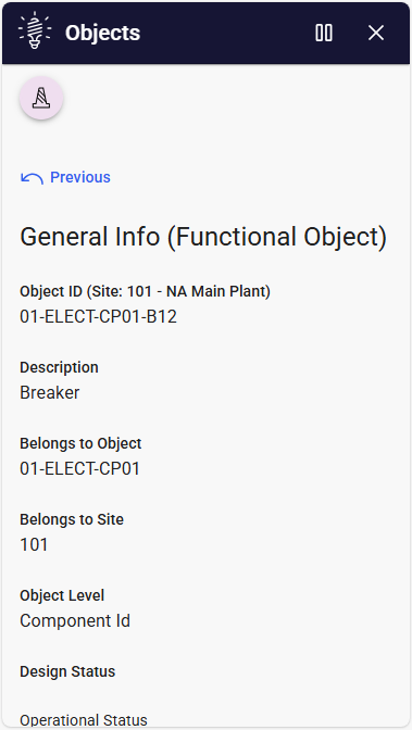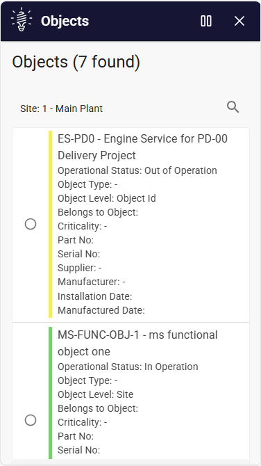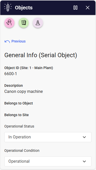 The **Objects** Workflow (app) lets you search for Objects for a selected *Site*. You can View and update General Information for the selected *Serial* or *Functional* Object.