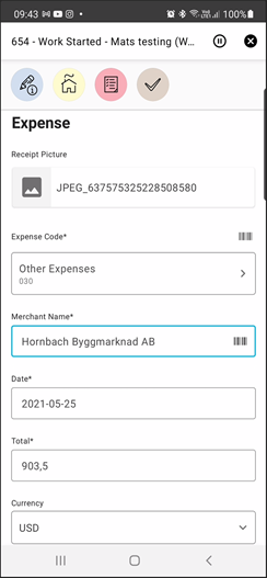 The receipt image will be stored in IFS Media Library and connected to the expense line.