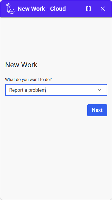 After this, the New Work will be created and depending on the first choice a Fault Report or Work Task will be created.