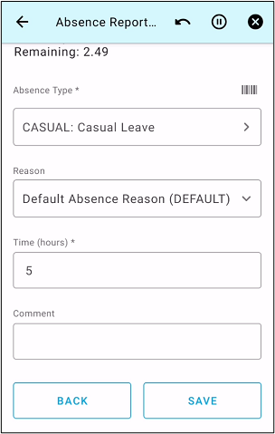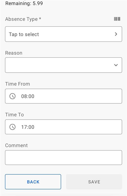 After the Project selection, on this screen users can create new absence registration.