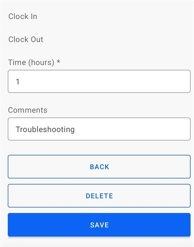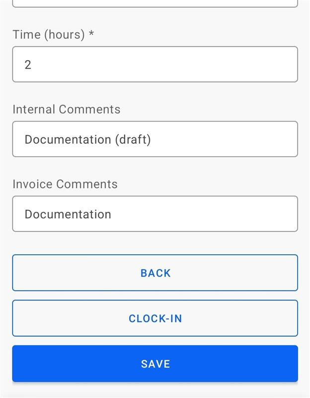 * Provide the time in hours or click 'Clock In'